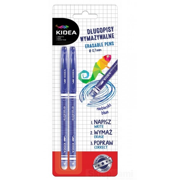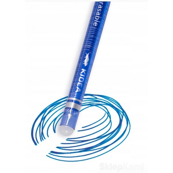 Niebieski długopis wymazywalny idealnie sprawdzi się w szkole, ponieważ gumką, którą jest zakończony, można wymazać każdy popełniony podczas pisania błąd. Elegancki design oraz precyzyjna końcówka sprawiają, że pisanie nim to czysta przyjemność.