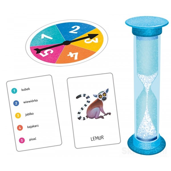 Kalambury dla dzieci to gra, która rozwija wyobraźnię i umiejętności komunikacyjne, jednocześnie zapewniając mnóstwo frajdy! Zbierz przyjaciół lub rodzinę i przygotujcie się na pełną śmiechu i radości zabawę. Zakręć kołem losującym i przedstaw hasło w najbardziej kreatywny sposób. Na 56 kartach znajdziecie hasła z pięciu kategorii: 1. PRZEDMIOT; 2. ZWIERZĘ; 3. JEDZENIE; 4. ZAWÓD; 5. CZYNNOŚĆ