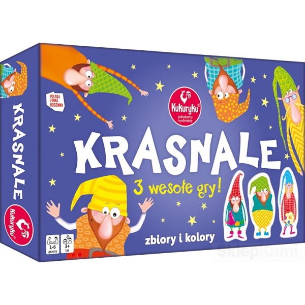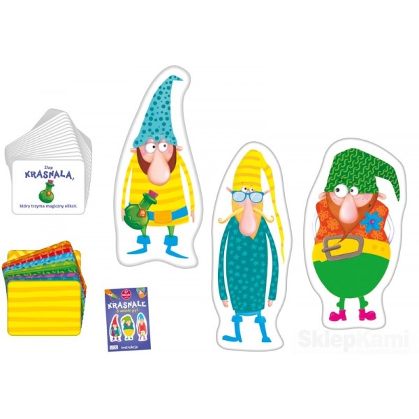 Krasnale to zestaw wesołych gier dla całej rodziny. Trzech braci zachęca do zabawy i nauki. Gry uczą rozróżniania wzorów, kolorów, kształtów, ich analizowania i porównywania, ćwiczą spostrzegawczość i refleks. W instrukcji znajduje się propozycja trzech gier, wystarczy jednak trochę fantazji, aby wymyślić własne zasady z udziałem krasnali.