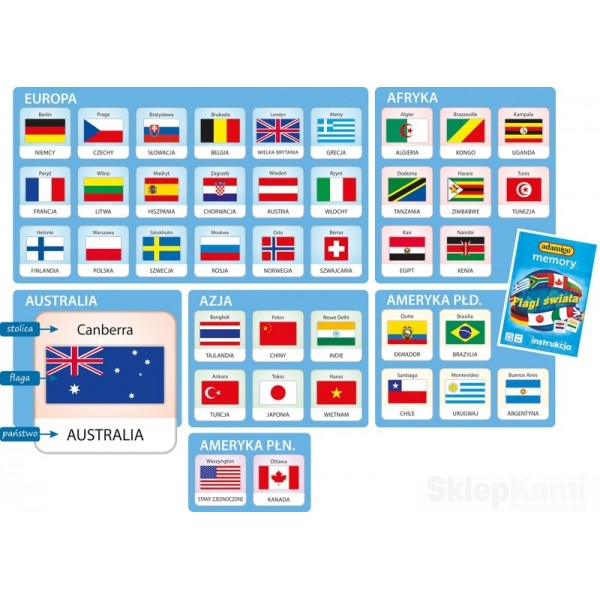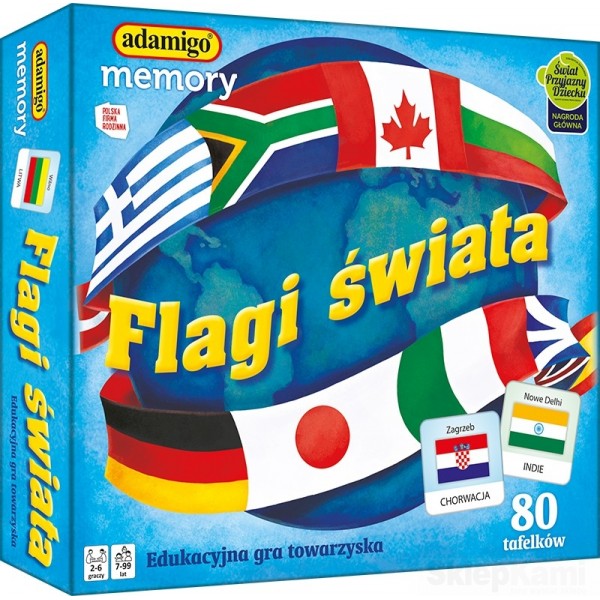 Gra ADAMIGO MEMORY jest doskonałą grą towarzyską dla wszystkich lubiących dobrą zabawę w wesołym klimacie. Rozwija pamięć, uczy koncentracji, zbliża rodzinę i uprzyjemnia wolne chwile. Tym razem młody gracz ma okazję zapoznać się z wyglądem aż 40 flag różnych państw z całego świata.
