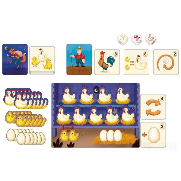 Powrót kultowej gry planszowej w nowej, strategicznej odsłonie! Przerzucaj kości, zbieraj jajka, kurczaki i kury. Dbaj o swój kurnik i wprowadzaj do niego ulepszenia, bo nigdy nie wiesz, kiedy Lis powróci pod osłoną nocy. Planuj, kombinuj i jako pierwszy posadź wszystkie kury na grzędach. Więcej emocji, więcej decyzji i jeszcze więcej Lisa! Zapełnij kurnik i przechytrz Lisa!