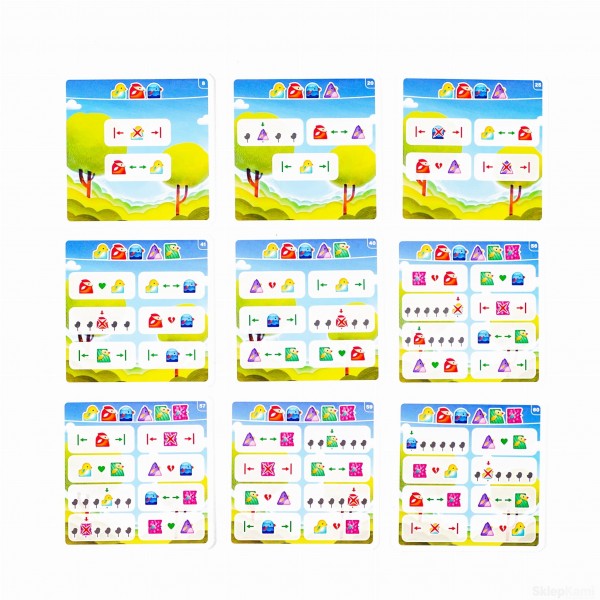 Pomóż ptasim przyjaciołom odnaleźć właściwe miejsce na magicznym drucie! Weź kartę, rozwiąż zagadkę i ułóż wybrane ptaki w dobrej kolejności. Jest tylko jedno rozwiązanie zagadki. Znajdziesz je na rewersie karty
