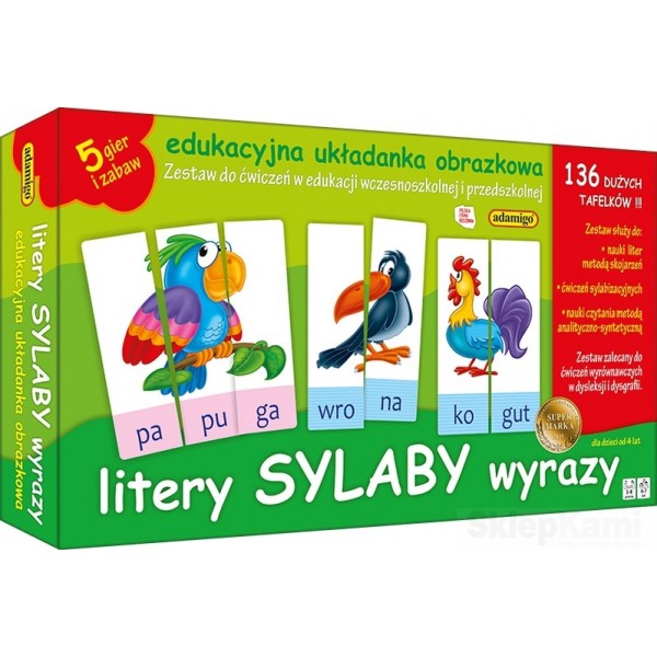 ADAMIGO LITERY SYLABY WYRAZY UKŁADANKA EDUKACYJNA 5 GIER I ZABAW