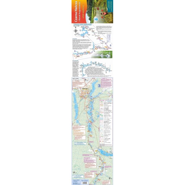 "Czarna Hańcza i Kanał Augustowski - szlak kajakowy" to mapa i przewodnik w jednym. Mapa w skali 1:50'000 przedstawia przebieg szlaku kajakowego po Czarnej Hańczy od Jeziora Wigry i miejscowości Gawrych Ruda do wsi Rygol, a następnie Kanałem Augustowskim do Augustowa.