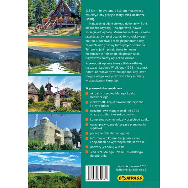 Przewodnik Mały Szlak Beskidzki zawiera praktyczne informacje o jednym z najpopularniejszych długodystansowych szlaków górskich w Polsce, kóry prowadzi z Bielska-Białej Straconki na szczyt Lubonia Wielkiego przez: Beskid Mały, Pasma Pewelsko-Krzeszowskie, Beskid Makowski i Beskid Wyspowy. Łączy zatem te górskie regiony, które nie znalazły się na trasie Głównego Szlaku Beskidzkiego, najdłuższego górskiego szlaku pieszego w Polsce.