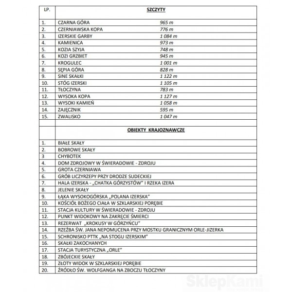 5. Odznakę uzyskuje się poprzez zdobycie określonych szczytów oraz zwiedzenie wskazanych miejsc (według zamieszczonego wykazu).