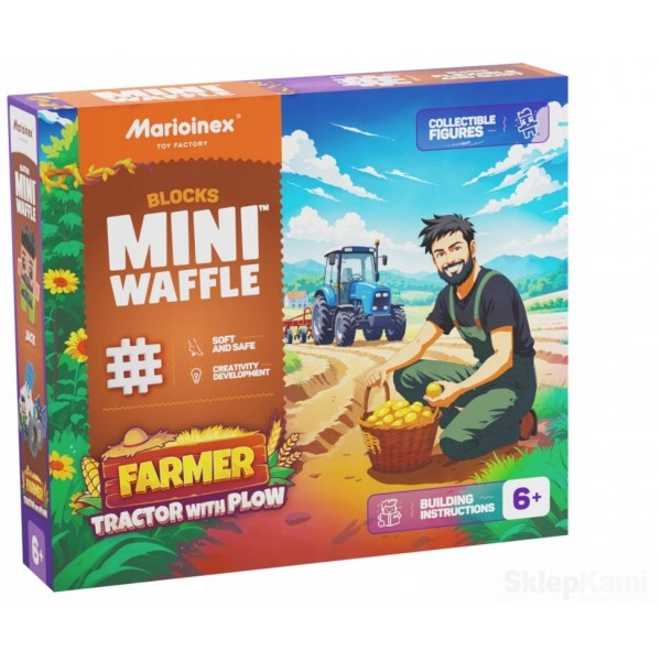 Zestaw Mini Waffle Farmer - Traktor z pługiem to doskonała okazja, by poznać tajniki pracy rolnika od podstaw. Dzięki klockowemu modelowi traktora z pługiem dziecko może wcielić się w rolę Jacka i rozpocząć własną przygodę z orką. Czy uda się zaorać całe pole przed zmierzchem? A może trzeba będzie przygotować grunt pod sadzenie warzyw? Wszystko zależy od wyobraźni małego farmera!