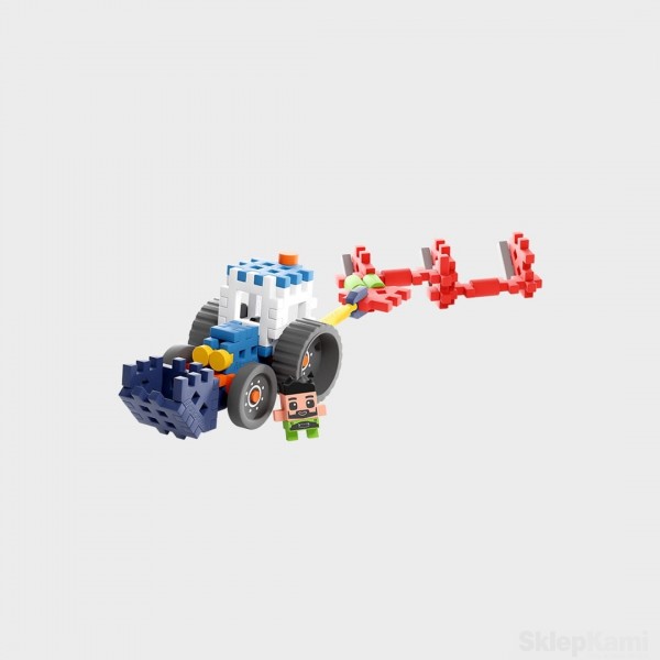 W zestawie znajduje się 50 elastycznych, kolorowych elementów, z których można stworzyć model traktora z pługiem oraz figurkę Jacka. Specjalna konstrukcja pługa pozwala na zabawę w stylu prawdziwego rolnika, a duże koła dodają pojazdowi charakteru.