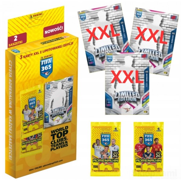 KARTY FIFA 365 ADRENALYN XL 2026 PANINI 2 SASZETKI +3 KARTY XXL LIMITOWANE