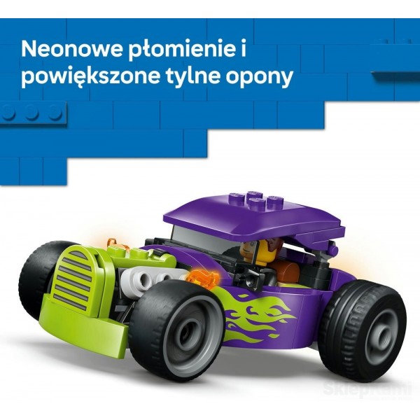 Młodzi miłośnicy wyścigów samochodowych w wieku od pięciu lat mogą zapiąć pasy i przygotować się na szybką akcję wyścigową dzięki zestawowi LEGO® City Hot rod (60485). Ten model samochodu do zbudowania dostarczy wielu emocji dzięki szczegółowym elementom, takim jak duże tylne opony, kokpit kierowcy z podnoszonym dachem oraz fajna fioletowa kolorystyka z neonowozielonymi płomieniami. Wystarczy dodać minifigurkę kierowcy, aby odgrywać superszybkie wyścigi.
