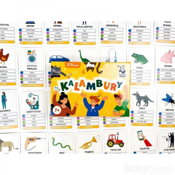 Kalambury to żywiołowa gra towarzyska, która sprawdzi się podczas rodzinnych wieczorów czy spotkań ze znajomymi. Na każdej karcie znajduje się hasło z ilustracją dla młodszych graczy oraz dodatkowe hasła, które można z sobą miksować, tworząc zabawne kombinacje. Emocjonująca rozgrywka i dużo śmiechu gwarantowane! W sumie do odgadnięcia aż 275 haseł! W zestawie znajduje się 55 kart oraz instrukcja.